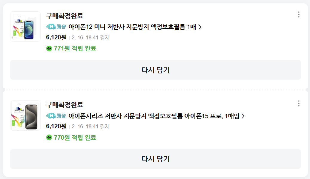 각종 액정 보호 필름은 힐링쉴드에서만 구매를 하고 있다.