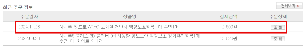 2024년 11월 26일 보호 필름 구매 후 2026년 02월 20일 교체를 했다.