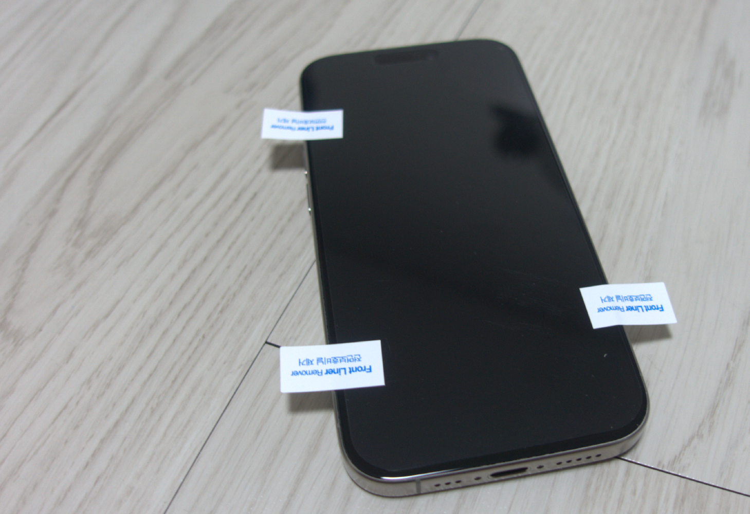 풀커버가 아닌 액정 끝 부분이 살짝 공간이 있는 필름이다 보니 측면에서 해당 공간 만큼 여유를 두고 하단 측면으로 이어서 붙이니 수월했다.