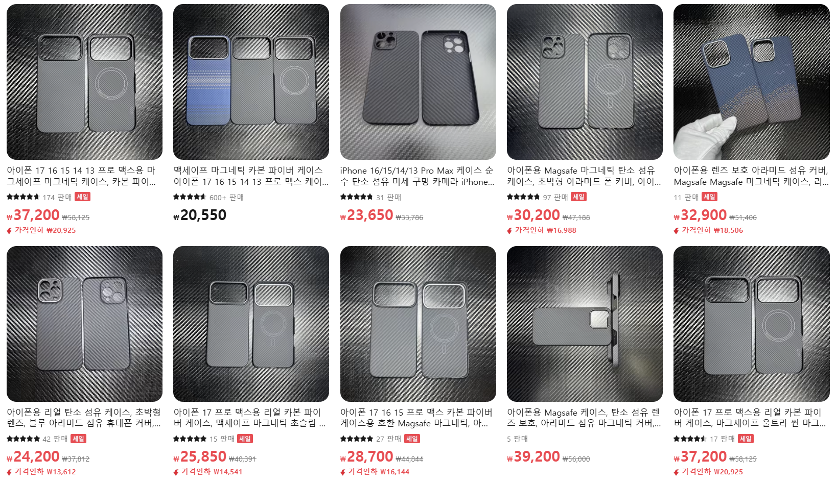 아라미드 소재의 가볍고 카메라 보호까지 되는 케이스들이다.